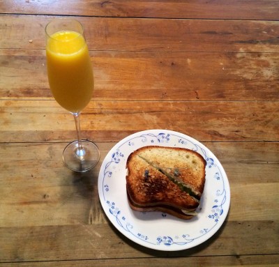 I’ve recently been craving sandwiches made with fruit and cheese. There’s something so fresh about taking a sweet, sometimes slightly tart fruit, combining it with a flavorful cheese and just a light drizzle of floral infused honey, all contained within two slices of buttery, toasted bread. By pairing green apples with a soft, double cream brie and a touch of sweet, lavender infused honey, it created the perfect juxtaposition of sweet, tart, and something rich. Since I basically had the perfect foods for wine – cheese, fruit, bread, and honey – I knew I needed to pair it with a good summer white or champagne. However, since I was craving something a bit sweeter, I settled upon a classic mimosa {three parts champagne, one part orange juice} with non-alcoholic champagne for a work-from-home lunch the other day. It was the perfect combination of something sweet and tart to start our week of properly.