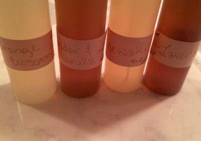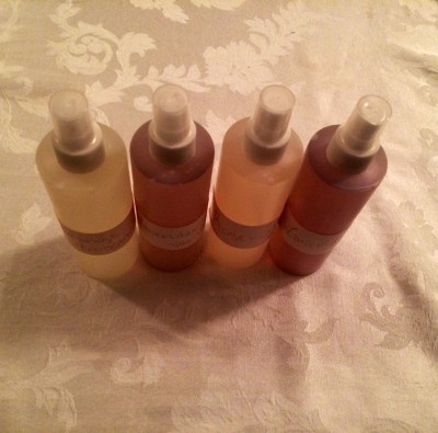 Note: I made four scents – rosewater, orange blossom, lavender, & lavender vanilla.