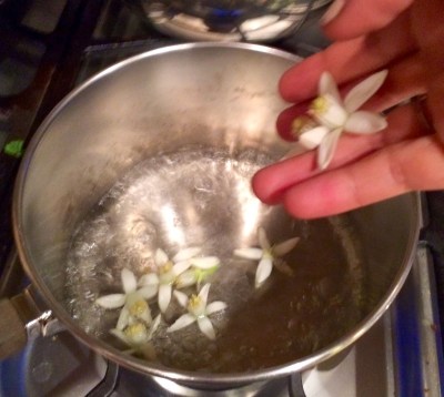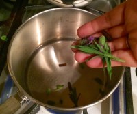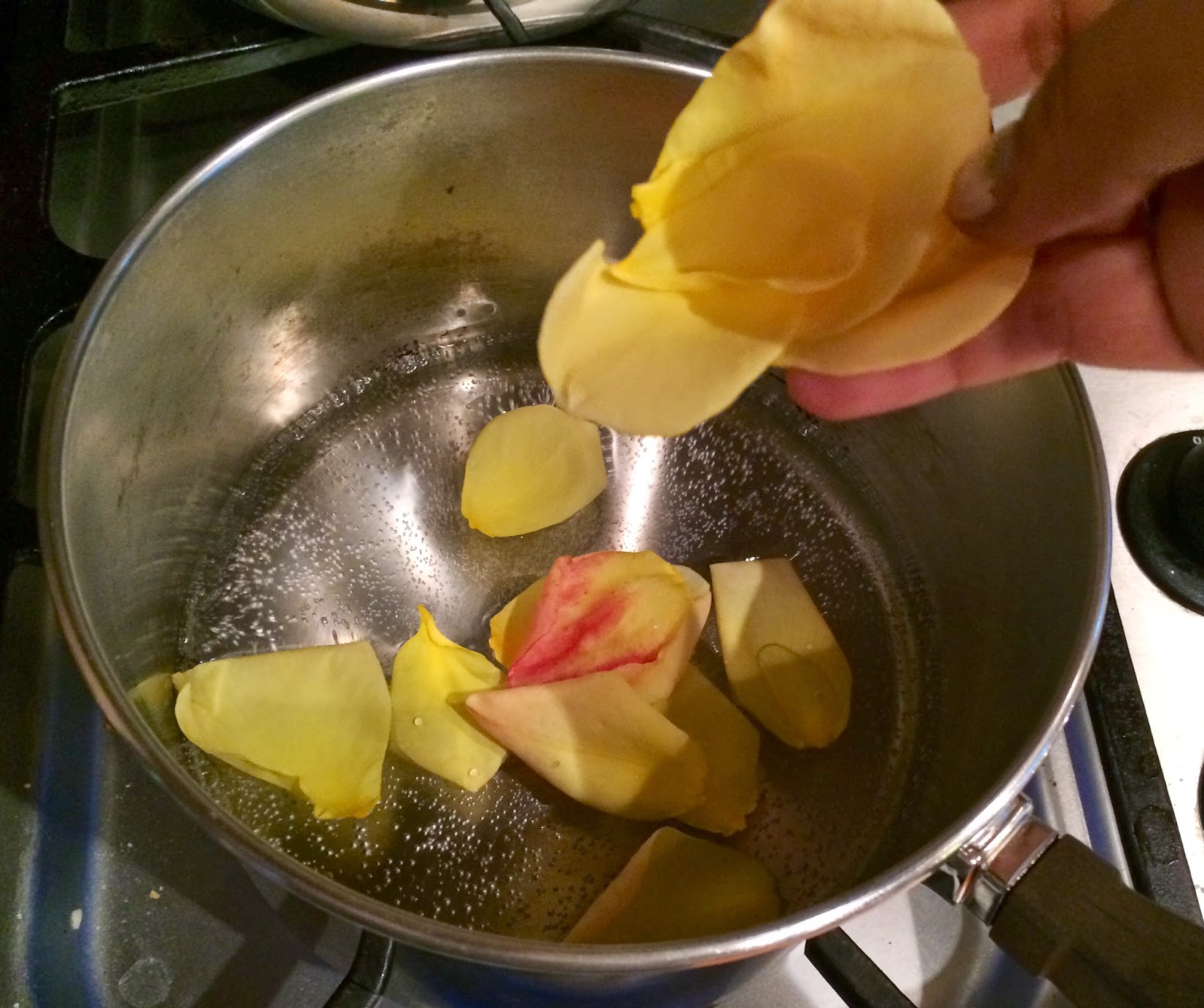 2. Once the water is boiling, add in the flower petals. Stir consistently.