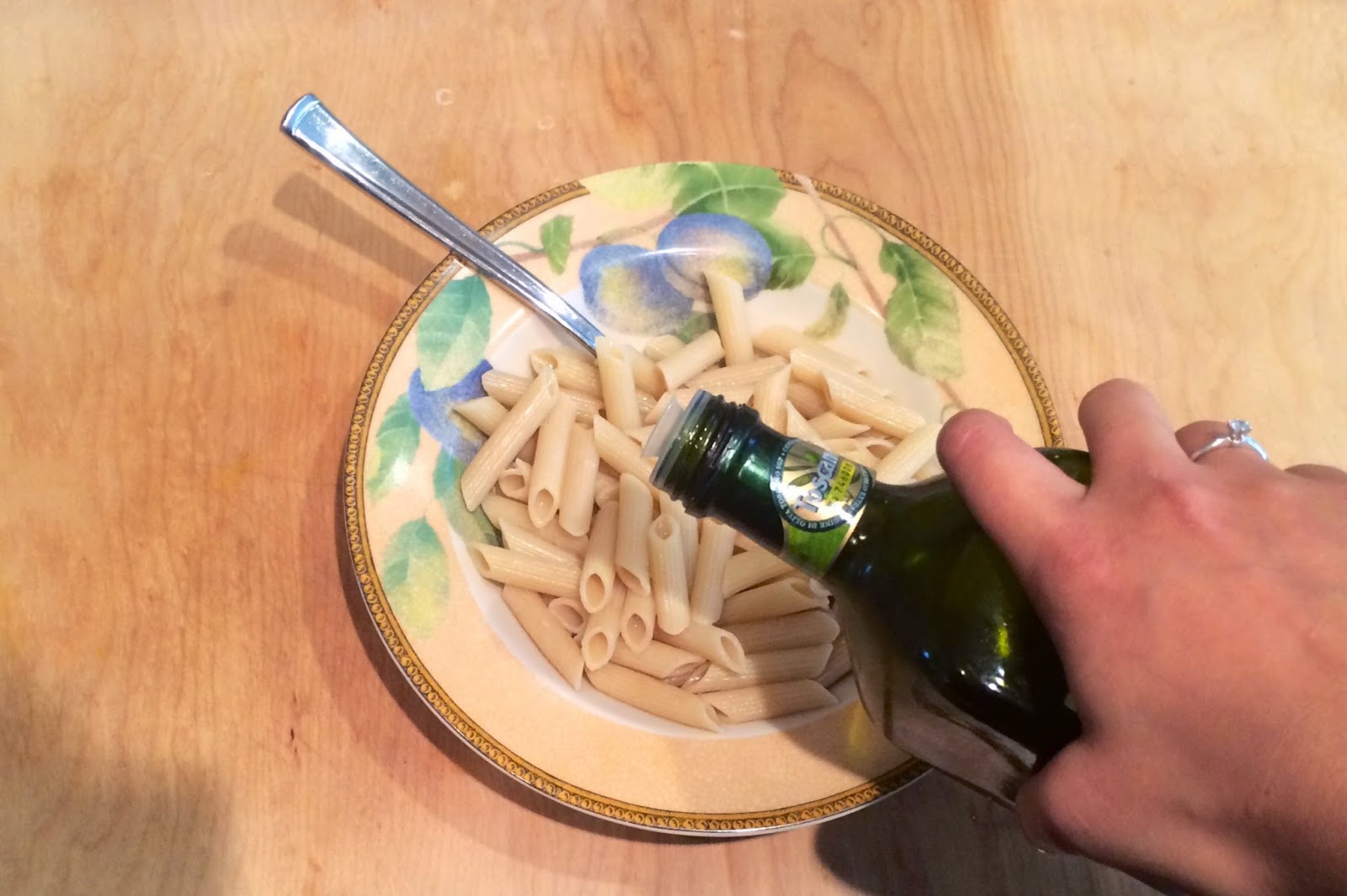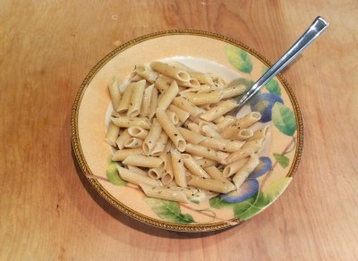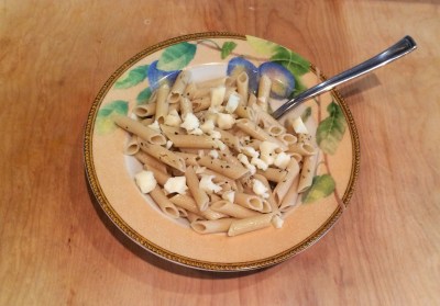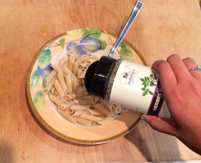 The other afternoon I found a bottle of Rodelle’s Herbes de Provence in our fridge. It was one of those impulse buys – something that looked amazing {add it to pastas, pizzas, soups, sandwiches…the possibilities being truly endless}, but that ended up rarely being used and tucked away to the back of our fridge. I decided to add it to my afternoon pasta, along with olive oil and crumbled gruyere. While the dish without the herbs would have been good – who doesn’t like pasta tossed in olive oil and covered in fresh, slightly melted cheese – the herbs {a blend of thyme, fennel, basil, savory, and lavender} added an extra dimension of flavor to the dish that I didn’t expect. I love that even once this bottle gets over {and I know it will very soon now that I have rediscovered it}, I can add any combination of herbs from our garden to add a slightly different flavor combination. The best part is this is ridiculously easy to make – just toss the penne with olive oil, add in the herbs, to taste, and then crumble fresh gruyere on top, which will melt slightly thanks to the warm, freshly cooked pasta.
