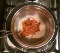 1. Using two tablespoons of the heavy whipping cream or milk, melt both the caramels and the milk chocolate in two separate double boilers.