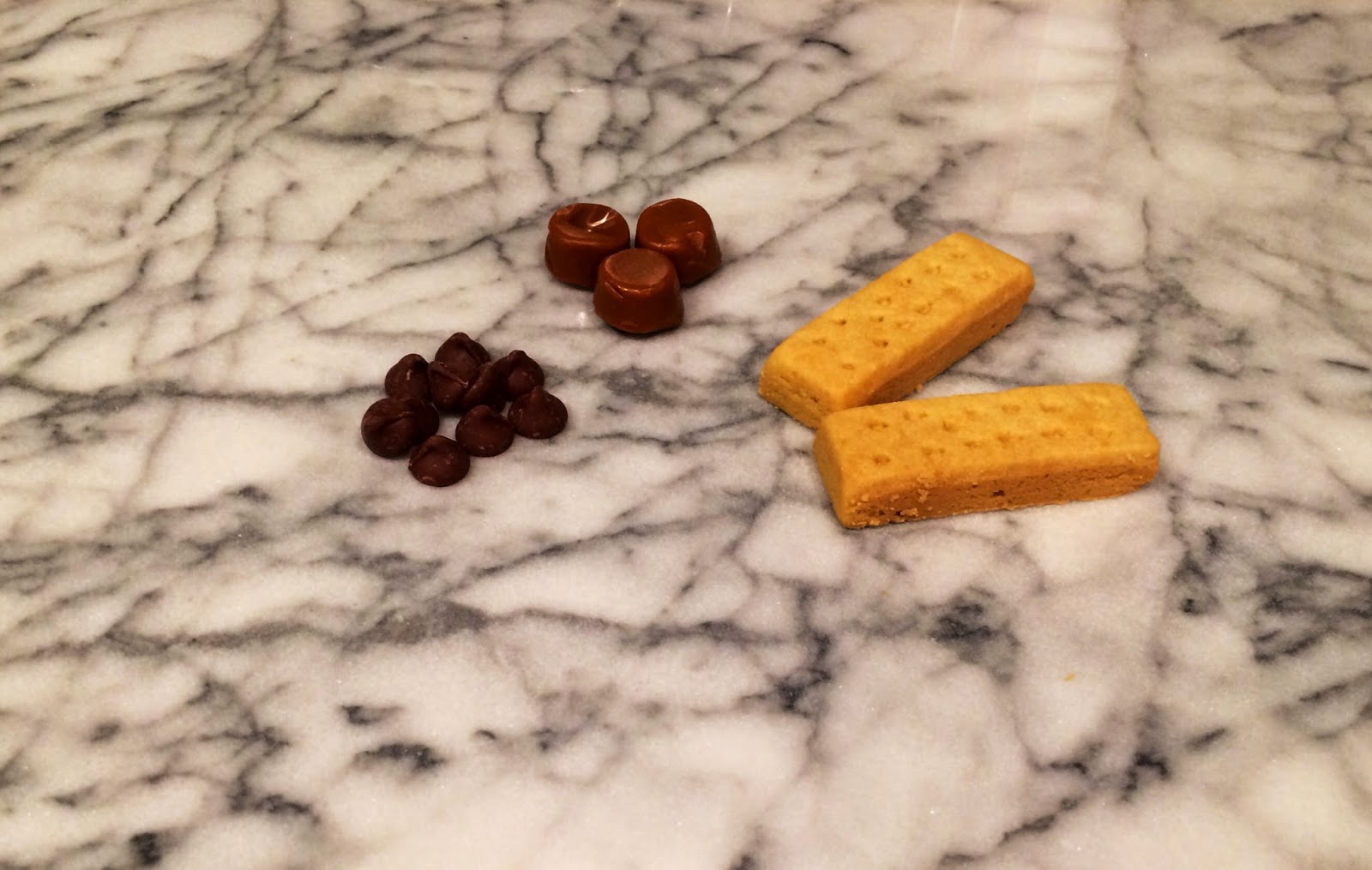 My favorite candy bar has hands down always been a Twix bar {with Milky Way bars coming in at a distant second place}. The mixture of a buttery shortbread cookie juxtaposes the sweetness of the caramel and milk chocolate perfectly, so much so that I try to avoid passing out the candy bar during Halloween since I end up eating every last one instead. This year to try and elevate our candy addiction and avoid eating everything we bought for the trick or treaters, I decided to make a homemade version of the Twix bar and paired it with my favorite hot cocoa for a dessert bar of sorts with homemade candy and a drink. It ended up being the perfect way to have a decadent dessert – the homemade version was far more indulgent, making one bar ridiculously filling – and I can’t wait to do this again on Monday night, after the kids have collected the candy, and along with a beautiful fireplace and cozy cashmere throw.