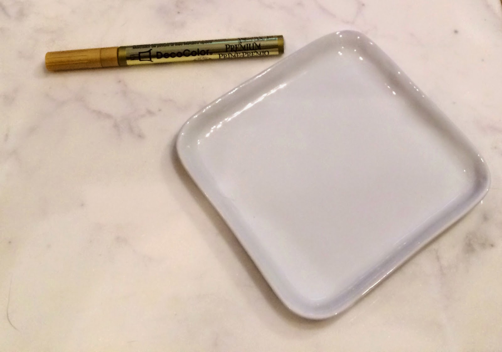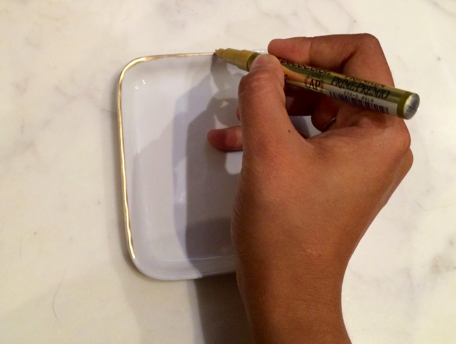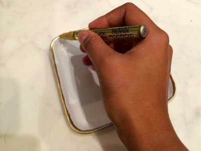 Step 2: Once it dries {my pen instantly dried}, go back around the tray with the gold. This time focus on evening out the thickness of the line and filling in any spots that need to be touched up.