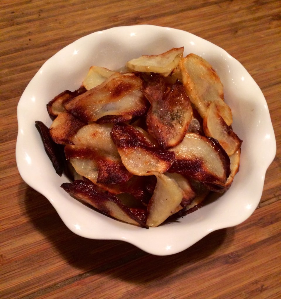 4. Bake in the oven for about 20 minutes. I preheated the oven to 450° degrees. The thinner slices were done after 15 minutes, while the thicker slices needed about 25.