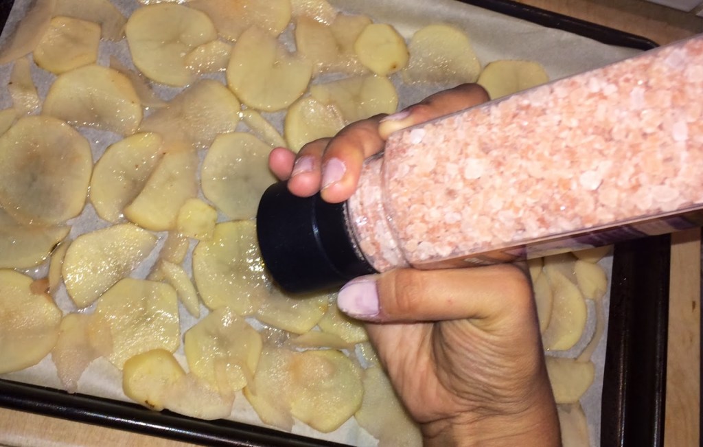 3. Sprinkle some of the pink himalayan sea salt over the potatoes to taste.