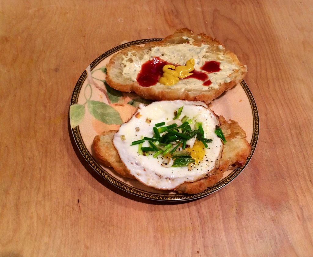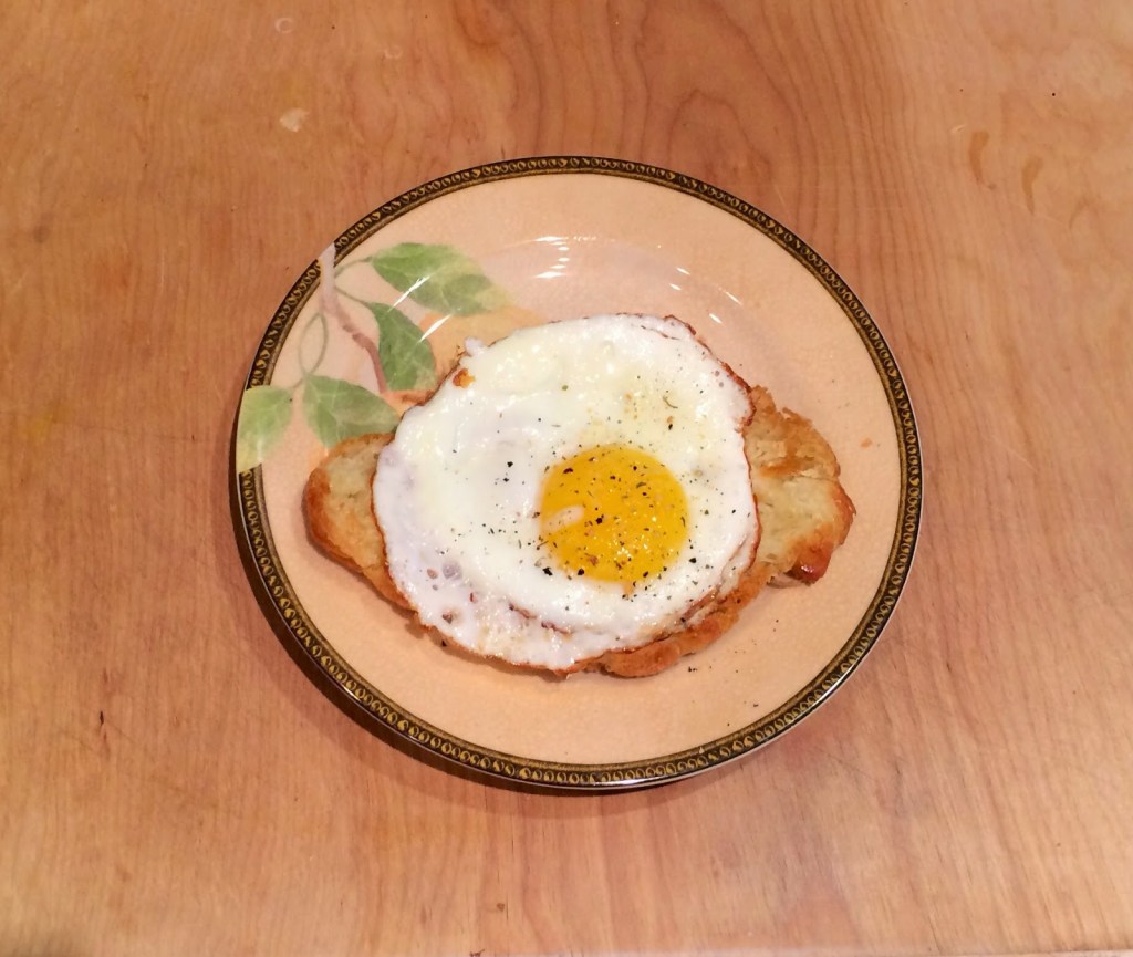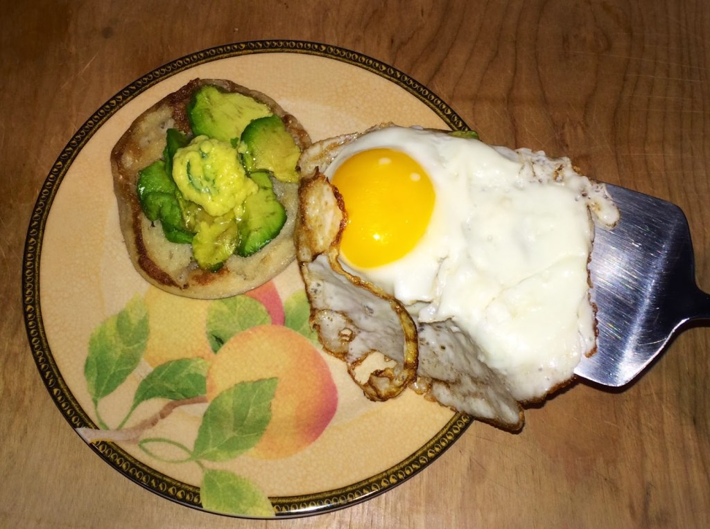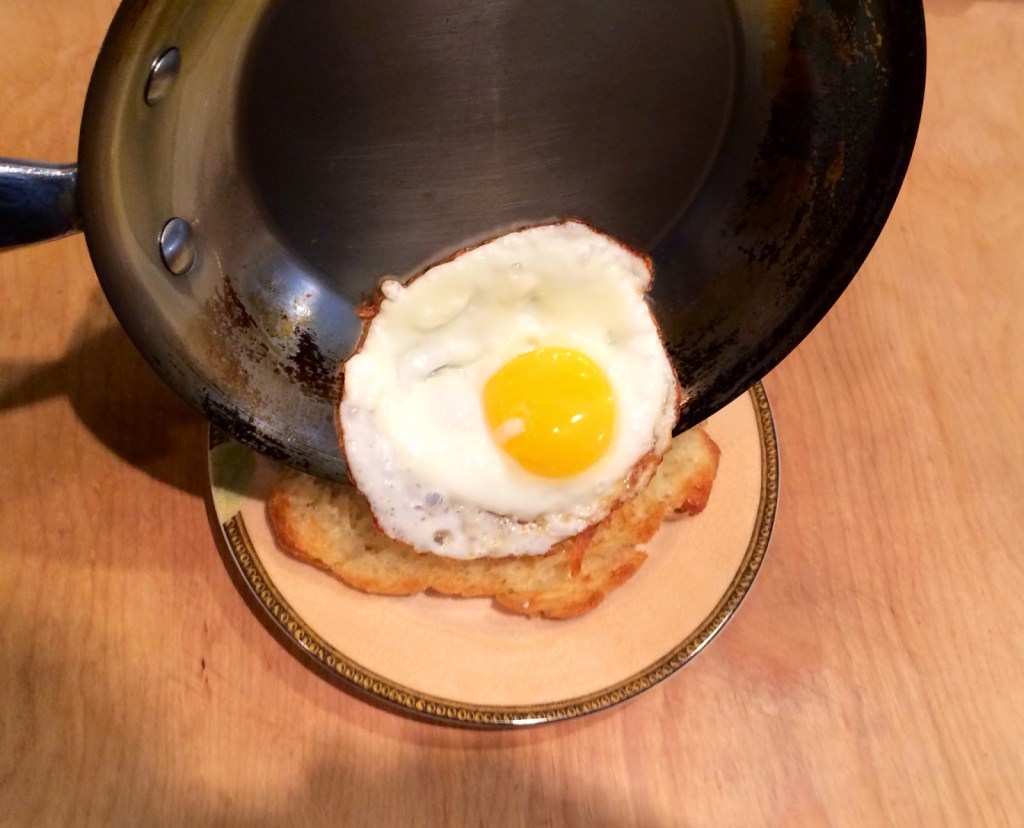 4. Since I destroyed two eggs that I tried to poach, I settled on making a fried egg, and wrapped the egg white over the yolk. This left it feeling like a poached egg and still allowing my eggs to get runny as I ate the dish.
