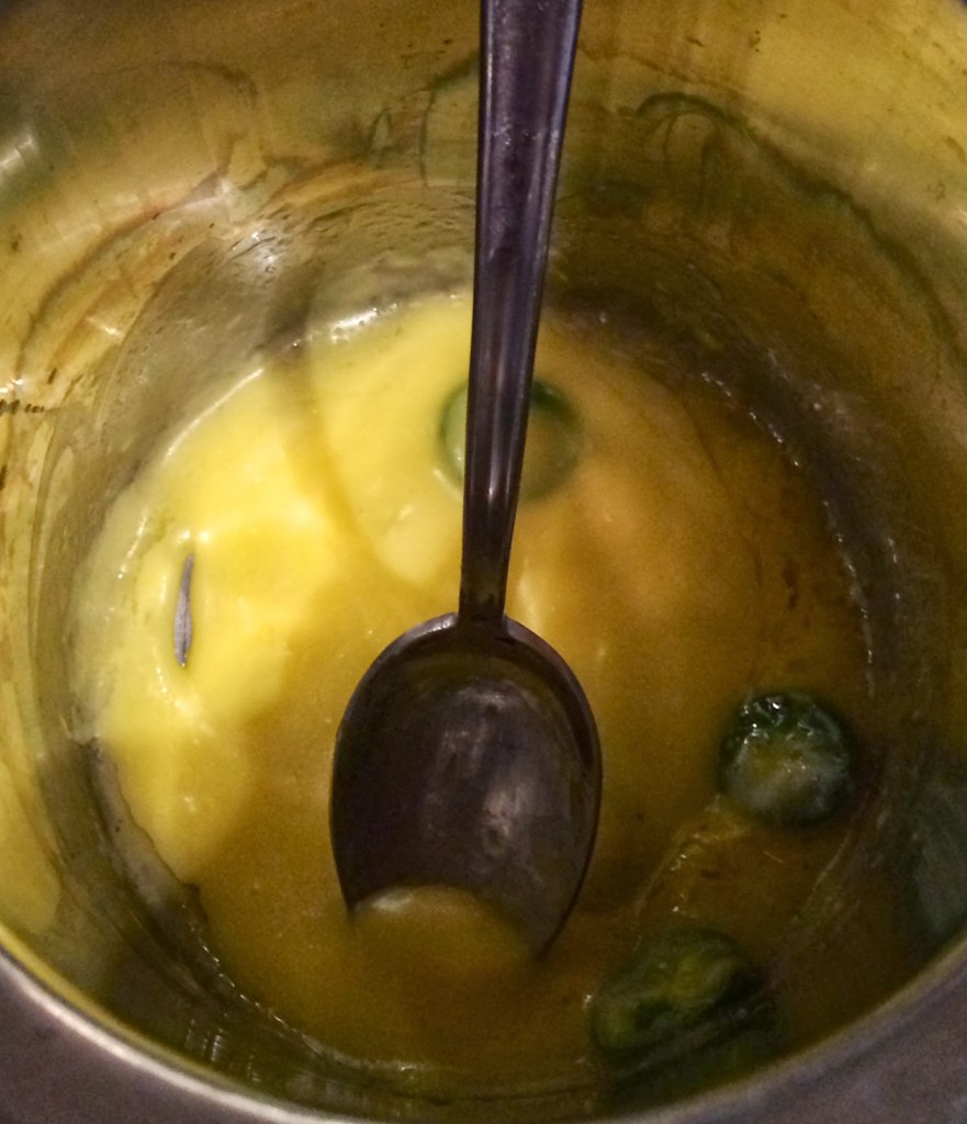 3. Using this recipe, I made a hollandaise sauce. I added in a few pieces of sliced jalapeño after the egg was whipped, but before I added in the butter. It added in just a slightly spicier flavor.