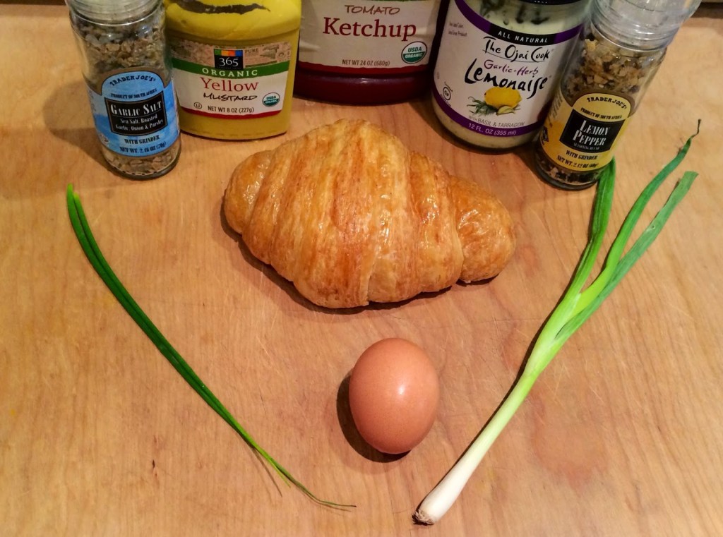 I typically enjoy making decadent brunch dishes, but sometimes, the simplest dish that I can take on the go makes the most sense for my first meal of the day. After all, I spend the majority of my time trying to whip up quick-to-eat and easy-to-make healthy meals. Enter: the classic egg sandwich. As a child, I loved those weekend mornings when my mom would make egg sandwiches for us. But as an adult, my taste buds require something slightly more elevated than two slices of white bread, scrambled eggs, and tomato ketchup. I decided to elevate my childhood breakfast of choice with a freshly baked croissant from our local bakery, a fried egg, Italian cheese blend, garlic salt & lemon pepper for seasoning, spring onions, chives, ketchup, mustard, and a garlic herb lemonaise {a lemony mayonnaise}. The warmed croissant + melted cheese paired perfectly with the flavorful egg and condiments, while the slight dose of vegetables and herbs from the spring onions and chives gave it just the right burst of flavor. While it’s not the healthiest of breakfast choices {hello, buttery croissant}, it was quick to whip up, and the runny yolk from slicing the sandwich in half + the creamy lemonaise was reminiscent of my favorite weekend brunch dish: Eggs Benedict. What I loved most is that this sandwich feels like an elevated childhood classic, making it feel both comforting and grown up at the same time. Plus, if you prefer vegan eggs, you can swap the fried egg for a scrambled one made from an egg substitute instead. I hope you enjoy it as much as we do!