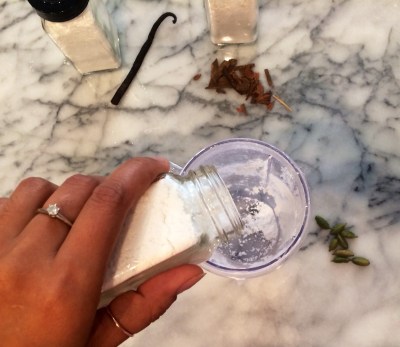 2. After taking the filling off the stove, add in the juice of one Meyer lemon, three more tablespoons of powdered sugar, and stir over a low flame again until the mixture thickens.