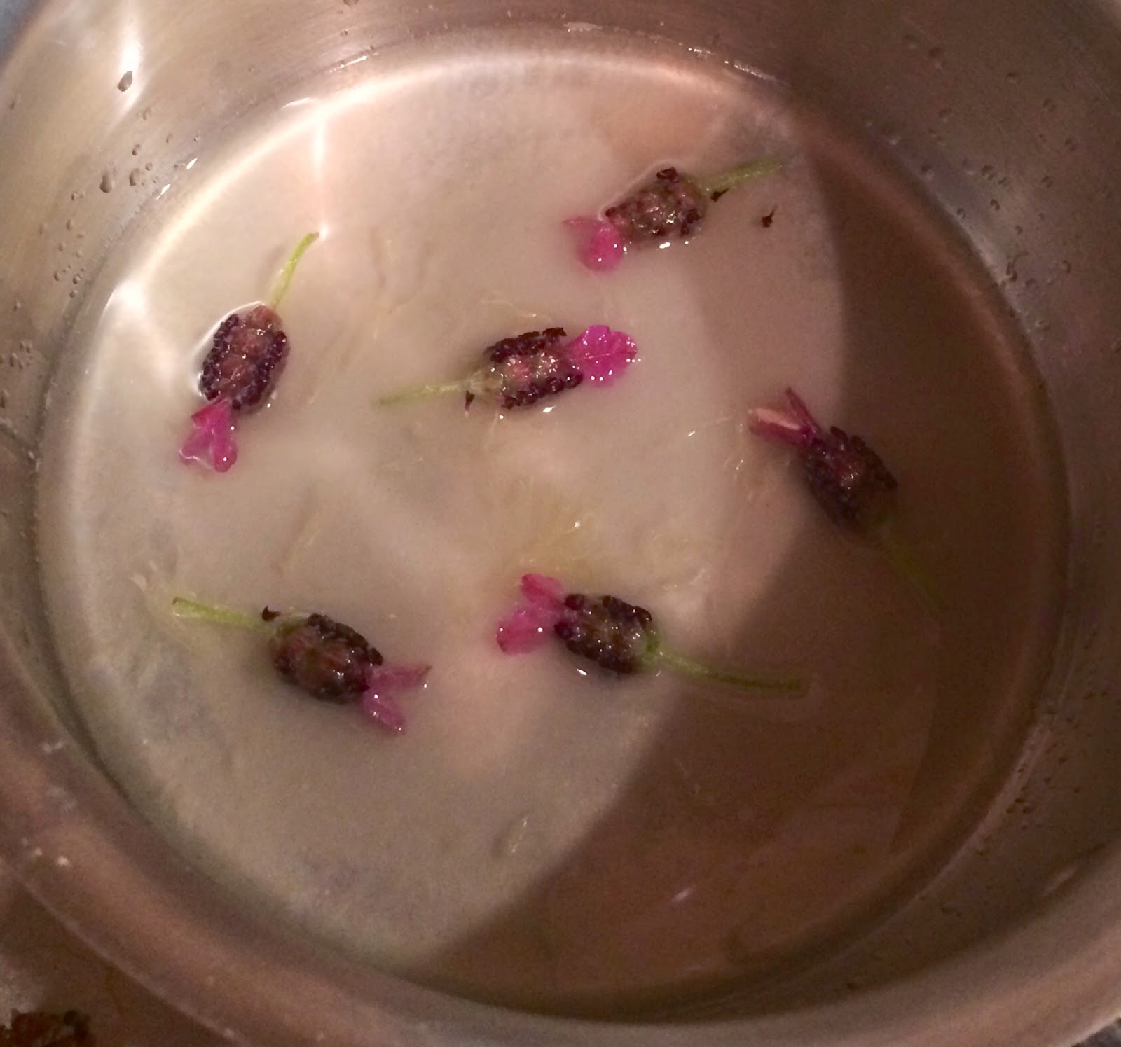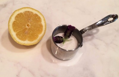 1. Boil equal parts sugar and water, with lemon juice and lavender over a low flame to make the simple syrup.