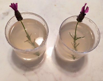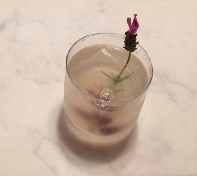 6. Garnish with the fancy lavender ice cube and a fresh lavender blossom.