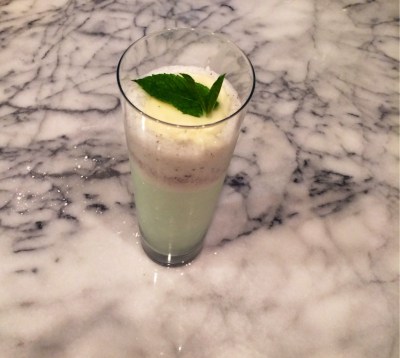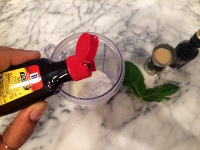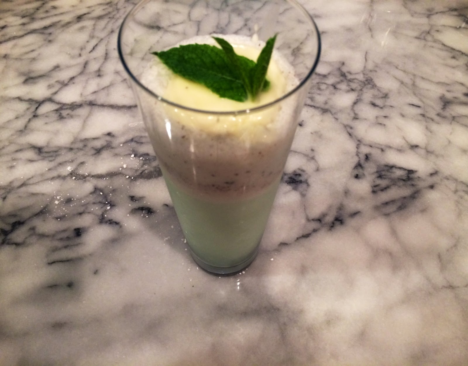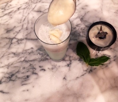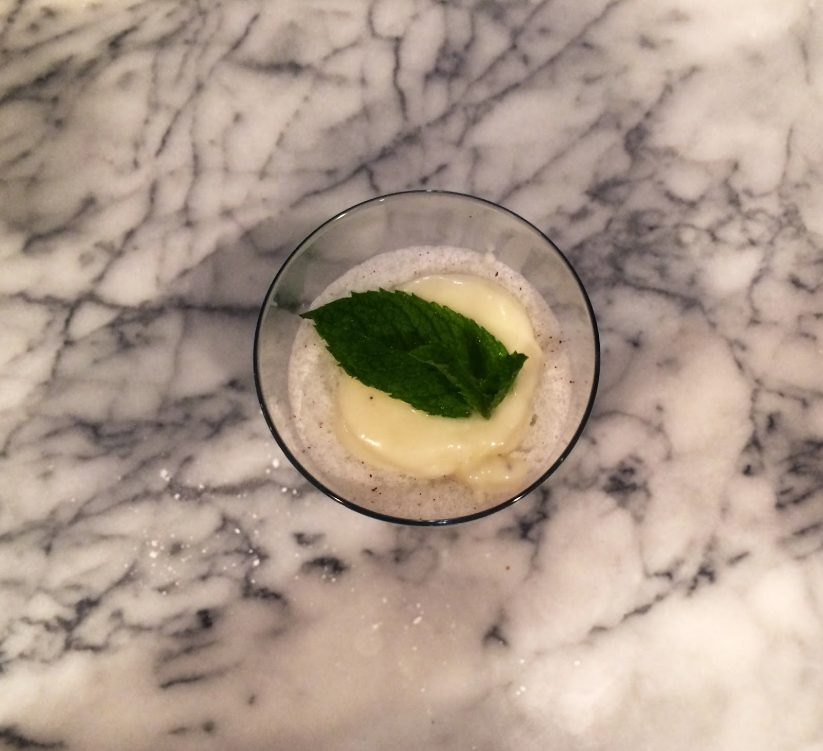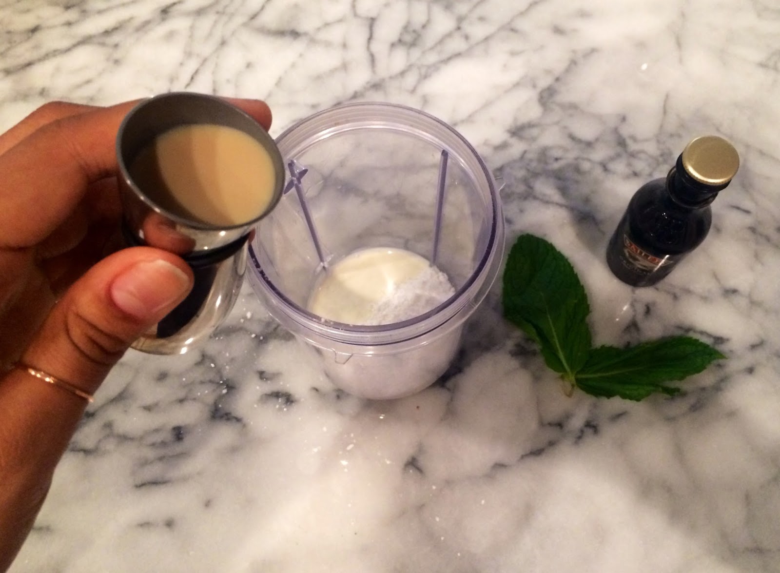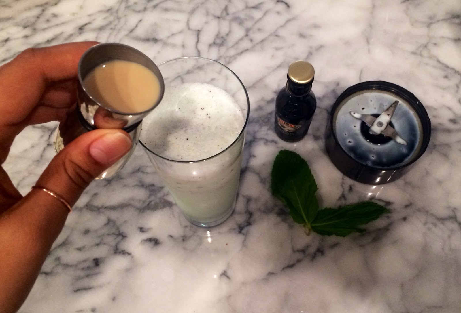 3. Top with a spiked mint infused whipped cream and garnish with a mint leaf.