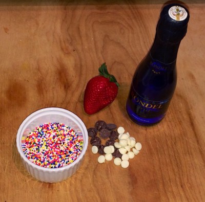 There’s nothing quite as romantic as chocolate covered strawberries, so I decided to spice up the treat by dipping the milk & white chocolate covered berries into sprinkles, nonpareils, pink sugar, and holiday-themed hearts. It made the dessert feel just a bit more special and added a candied crunch.