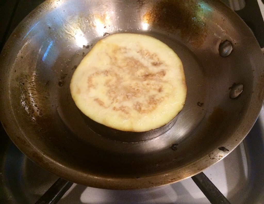 3. Grill the eggplant slice over a skillet with an oil spray until it’s golden brown on both sides.