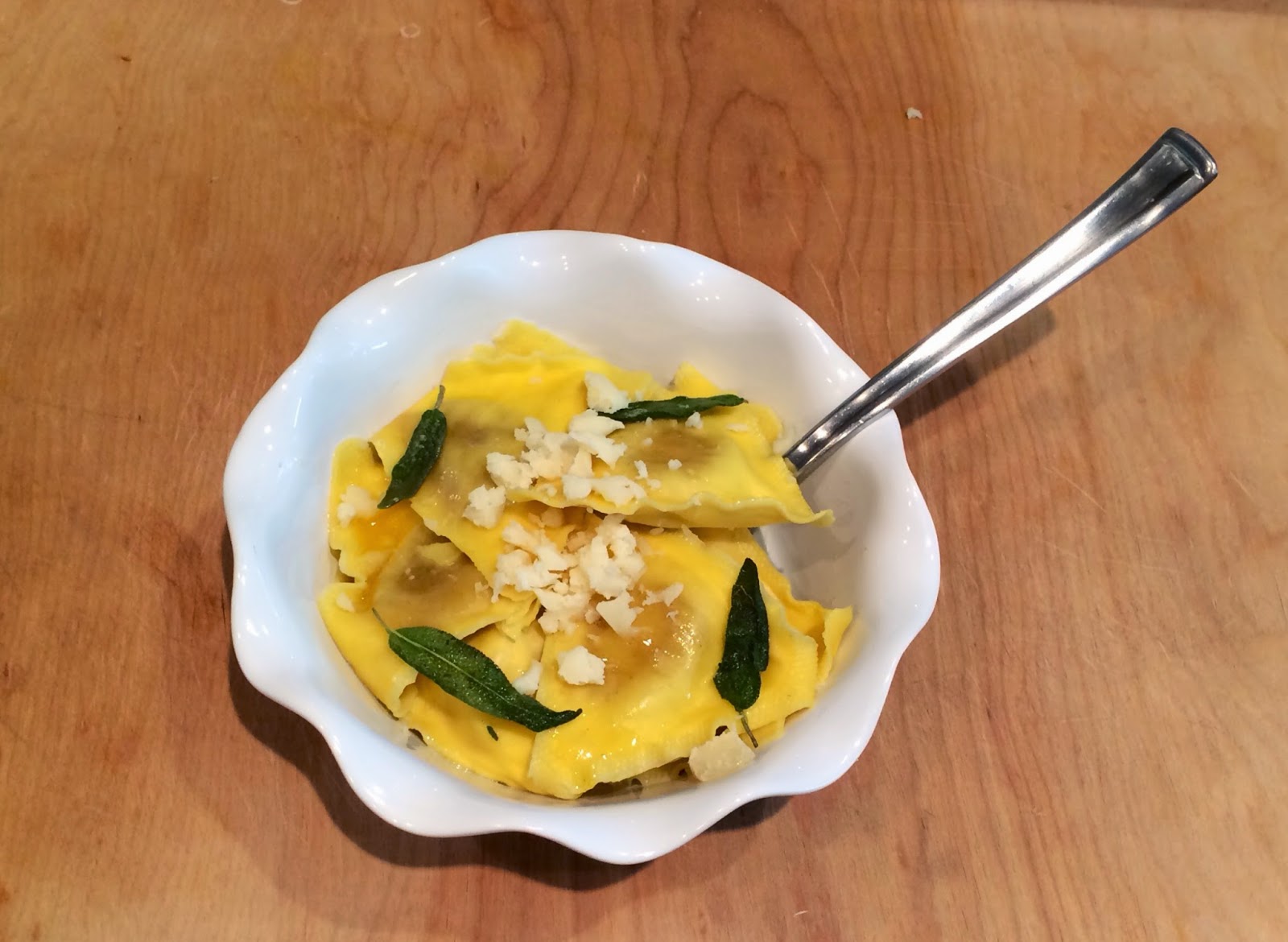 The other day I discovered butternut squash triangoli at the store. I instantly grabbed the fresh pasta, eager to figure out how best to serve it. After boiling the pasta, I browned sweet butter – along with fresh sage leaves – that were then poured over the triangoli. And to top it off, I crumbled gruyere, which melted ever so slightly in the warmth of the hot meal. The sweetness of the butternut squash paired perfectly with the buttery sauce, the crisped sage leaves, and the flavorful cheese. It felt like such an indulgent way to enjoy a robust and decadent lunch, and felt perfectly appropriate to enjoy while listening to the rain and wind outside.