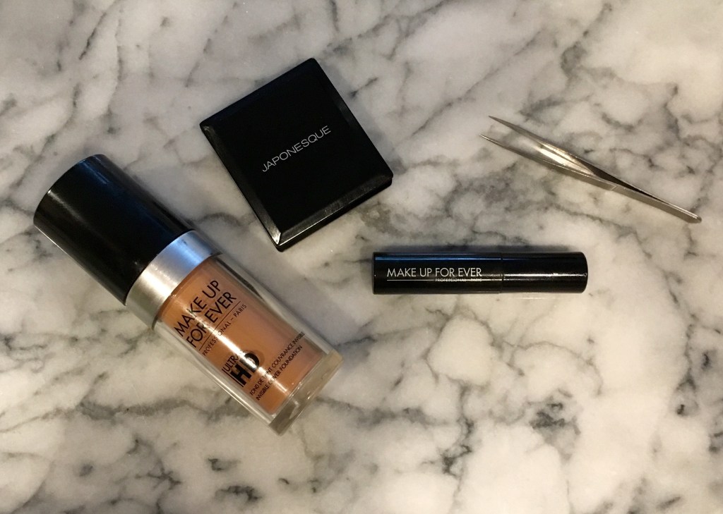 {Tools: Make Up For Ever Foundation & Mascara, Japonesque Brow Kit {similar here}, and Tweezers.}