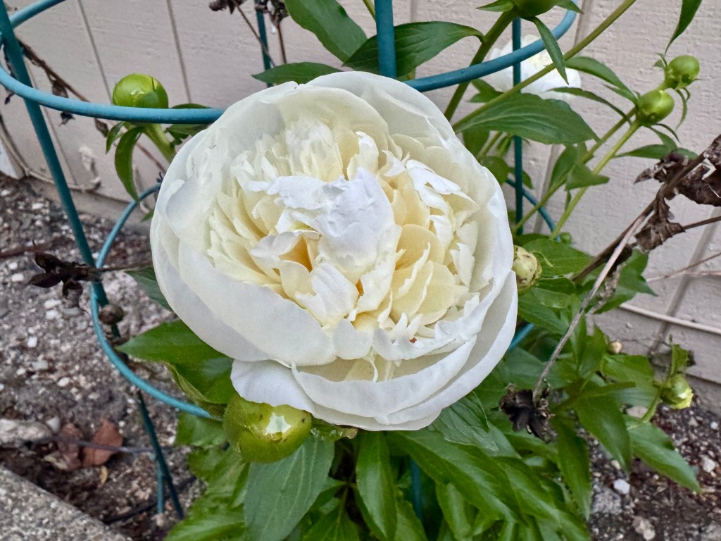 {Backyard blooms: oversized white peonies that just blossomed and smell incredible.}